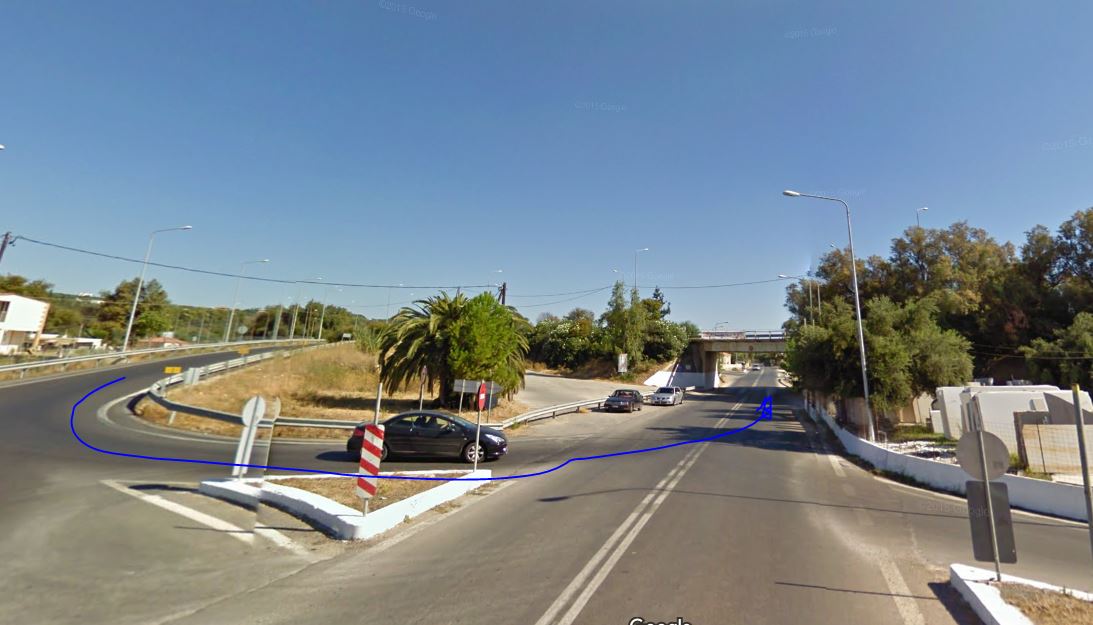 Når man kjører ut på denne veien, tar det ca. 15 minutter før man når avkjøringen til Kalyves. Avkjøringen er godt merket og man kjører av til høyre og tar deretter til venstre under motorveien.