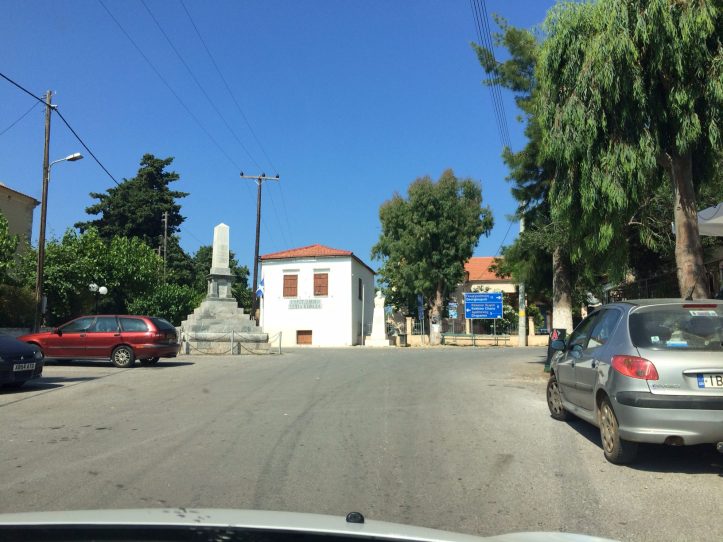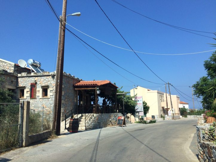 Så kjører man etterhvert inn i Kefalas og har det lille torget midt i mot. Øverst i gaten må man ta til høyre for å komme til Villaen. Maddie’s Cafe passeres på høyre side.